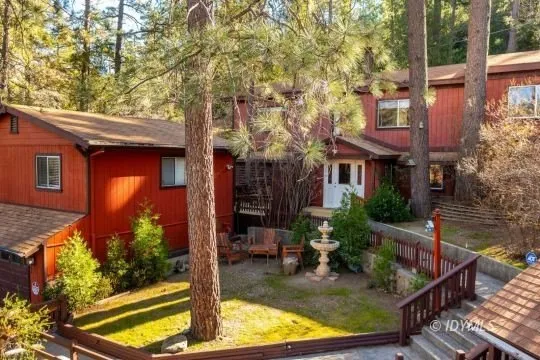 Discover a versatile mountain home offering comfort, flexibility, and income potential. This charming two-story residence features 3 bedrooms and 2 bathrooms with a welcoming living room, an additional room just off the living area ideal for an office or den, and a dining room highlighted by a dramatic windowed ceiling that fills the space with natural light. A bonus indoor-outdoor patio provides the perfect garden room or creative retreat, while a separate covered patio with hot tub hookups invites year-round relaxation. Enjoy outdoor living with a dedicated dog run and an additional patio ideal for entertaining under the mountain sky. The property also includes a detached two-car garage with a permitted one-bedroom apartment currently rented for $1,250 per month, offering excellent rental income or guest accommodations. Conveniently located near Idyllwild Arts Academy, this property bl...