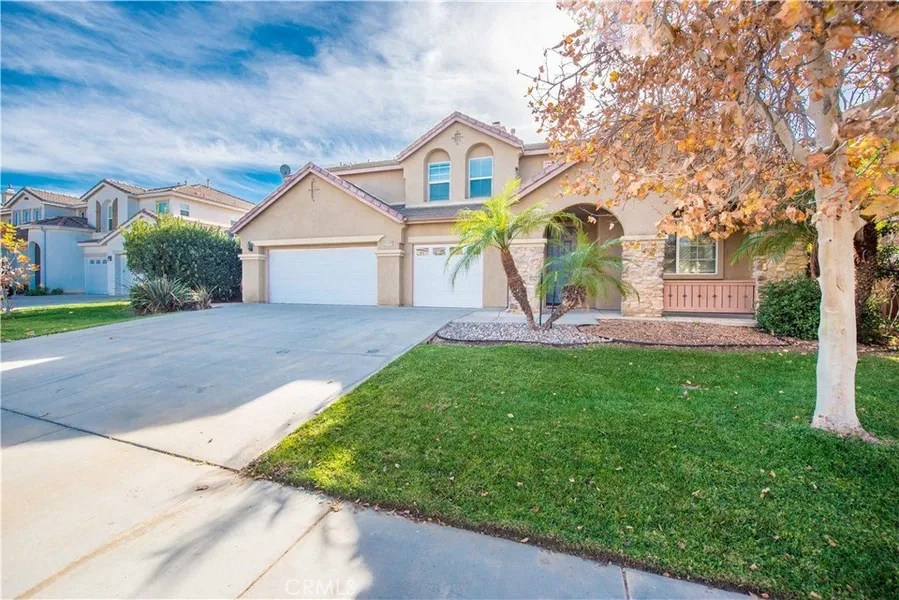 Welcome to 26599 Opal Street, a spacious and well-appointed 4-bedroom, 3-bath home with one bedroom and full bathroom downstairs. This home features an open floor plan ideal for comfortable living and entertaining, with a large kitchen that opens seamlessly to the living area, creating a bright and inviting space. A versatile loft provides the option for a 5th bedroom, home office, or additional living space. The primary suite offers a beautifully remodeled master bathroom and an expansive walk-in closet. Luxury wood-look laminate vinyl tile flooring enhances the main living areas, combining style and durability. Additional highlights include a three-car garage and a large backyard complete with an Alumawood patio cover, perfect for outdoor entertaining and year-round enjoyment. Situated near parks, schools, shopping, dining, and major commuter routes, this home offers both convenience and a strong sense of community, making it an excellent place to call home. It is nestled in the Mohogany Fields community, close to Kaiser Permanente Medical Center, Riverside Health University, Moreno Valley College and the Stoneridge Shopping Center.