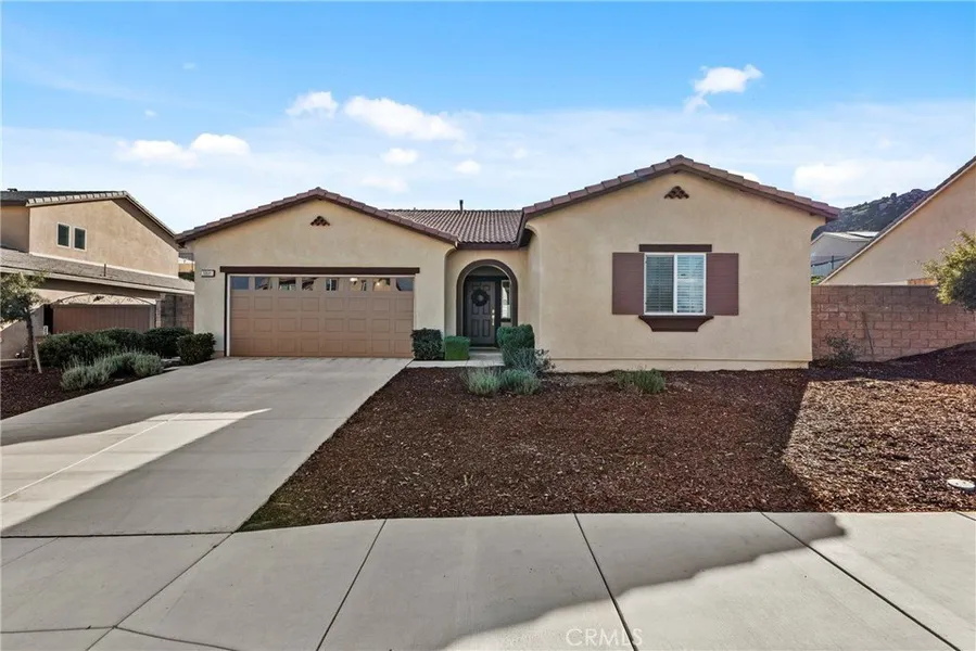 Stunning Turnkey home nestled in the heart of Winchester with beautiful Mountain Views! Built in 2022, this thoughtfully designed single story residence offers 3 bedrooms, 2 bathrooms, plus a versatile flex room located just off the entry hall. A separate hallway leads to two secondary bedrooms and a full bathroom providing privacy and functionality. The spacious Flex room offers endless possibilities and can be used as a optional fourth bedroom, home office, den, library or craft room. The open-concept floor plan flows seamlessly into the expansive great room, filled with natural light from the large windows overlooking the generous backyard - perfect for entertaining and modern living. The contemporary kitchen and dining area are bright and inviting, featuring impressive smoke maple cabinetry, Carrera Quartz Island countertops, and stainless steel appliances. The oversized primary suite includes an en-suite bathroom with dual sinks, a large walk-in shower, and a spacious walk-in closet. Sliding glass doors from the dining area open to a very large backyard - an open canvas ready for the new owner's imagination, ideal for creating a personalized outdoor retreat, garden or entertainment space. Additional highlights include owned solar purchased through the builder, D. R. Horton, with the buyer to assume only the solar lease for additional owner-added panels, providing enhanced energy efficiency. The 2-car attached garage offers direct access to the home for added convenience. Possible RV Potential.