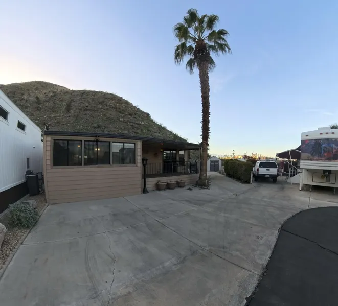 Welcome to this cozy one-bedroom, one-bath home tucked up against the mountains in the popular 55+ Sungate community of Cathedral City. This double lot (must be assigned together) offers extra parking, a storage shed, and a large wood deck that's perfect for relaxing or entertaining. You'll love the community amenities, including a refreshing pool, a recreation room, and beautiful mountain views, all just minutes from great dining, shopping, and entertainment. Let your imagination run wild, take advantage of this single wide unit and customize it to your exact wants and needs. This is a great opportunity to own in one of Cathedral City's most desirable communities-schedule a showing and come see it for yourself.
