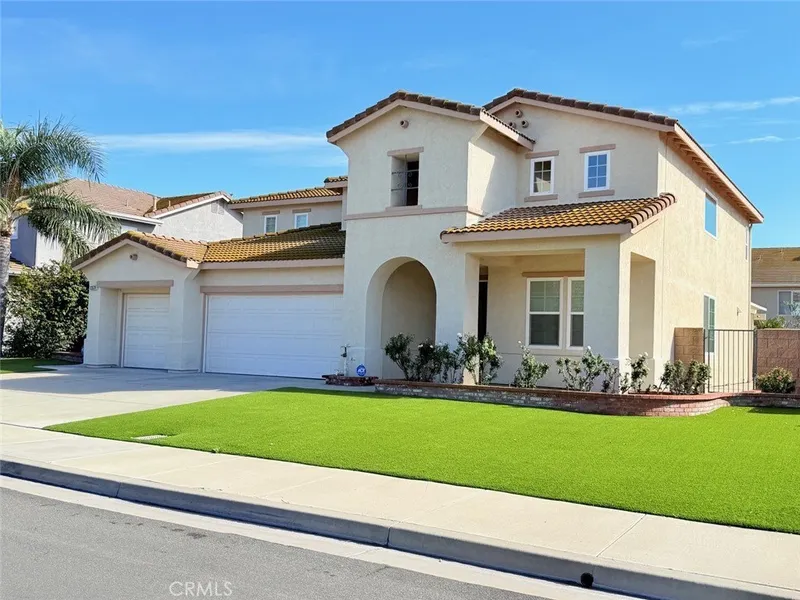 Welcome to this fully upgraded, move-in ready two-story home. It features 4 bedrooms and 3 bathrooms, Tiles floor on the main floor. Newer double-pane windows throughout the entire house with shutters, newer dual A/C units, a three-car garage with driveways, an artificial turf front yard with a rose garden, two side gates, and a drought-resistant pebble landscaping backyard with fruit trees.