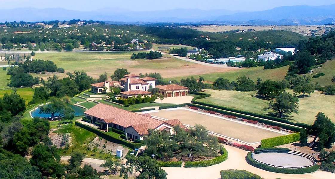 Site includes 21 acres of land in the equestrian community of La Cresta, with over 8 acres fenced and cross-fenced into seven large pastures with wood and wire mesh fencing. Property includes flat galloping fields and some sloped pastures, trail access and incredible natural beauty. The stunning main home includes 7,286 square feet of living space, with 5,412 square feet on the ground floor including entertaining spaces in living room, dining room, family room and gallery, plus huge master suite. Home includes 4 bedrooms, 4 1/2 baths in an extraordinarily flexible configuration, with spacious rooms and high ceilings throughout. Expansive windows and French doors provide enjoyment of 360 degree views of mountains and grounds.