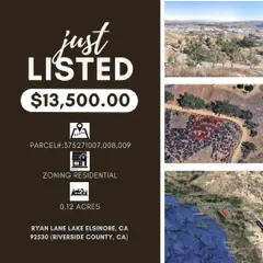 INTRODUCING RYAN LANE IN LAKE ELSINORE, CALIFORNIA! This residential lot sits a stones throw away from beautiful Lake Elsinore, which is the largest natural freshwater lake in Southern California! Situated in a safe, secure community, with gradual growth, you are sure to make your money work for you here, all the while being close to shopping, great dining and several outdoor activities (boating, water skiing, fishing and the beach to name a few).