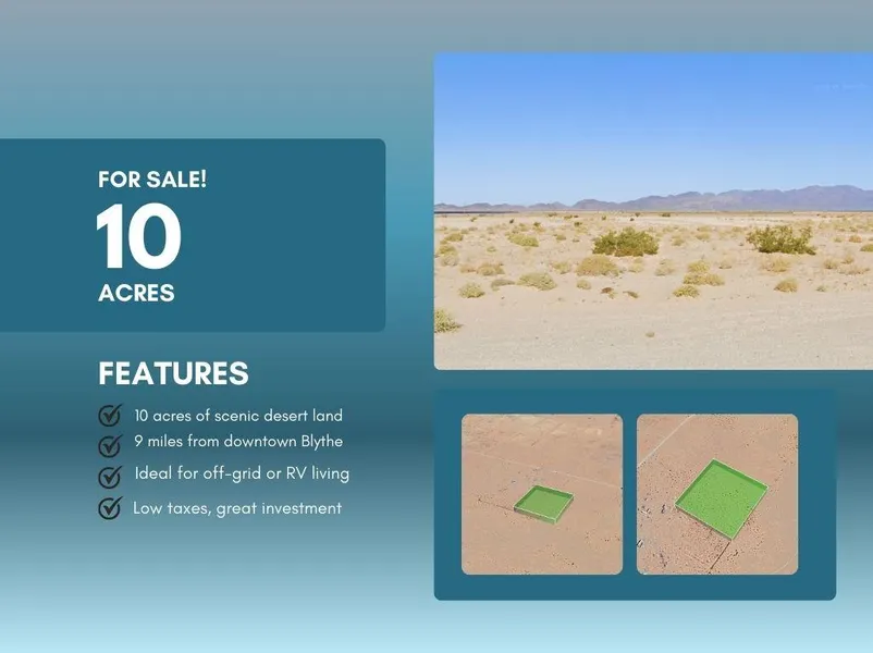 Discover endless possibilities with this 10-acre property in Riverside County, California, located off 9th Ave in the quiet desert community of Blythe.