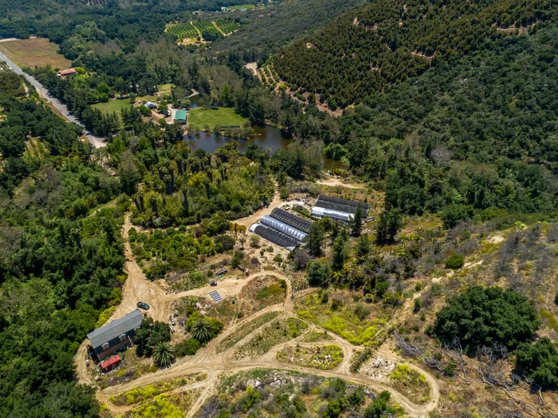 Welcome to the enchanting hills of De Luz, Temecula where the ocean breeze settles gently between rows of majestic hillsides ripe with fertile soils and new opportunities. This one of a kind property is comprised of 2 parcels totaling 40.64 acres of breathtaking views, rare and delectable fruits, and an unfinished barn (currently has a working 3/4 bathroom) and building plans designed to host an 1800 sq ft (2-3 bedroom) residence with a garage and a workshop below. Peacefully enjoy the solace of the quiet pond fed by 2 year round seasonal creeks while white swans gracefully glide across the water and turtles momentarily peak their noses above the surface for a breath of fresh air while fishing lines catch 26 inch bass. Gently sloping hillsides nestled in between the canyon have divulged a prime Mediterranean climate for growing some of the most incredible fruit species this side of paradise. Both properties are gated and are each equipped with city water. The larger property has a wet well and septic. Electricity is at the gate. The 10 acre parcel has a graded pad at the top of the driveway showcasing gorgeous canyon views. This grower's paradise is located where the weather is generally 11-15 degrees cooler than the valleys in Temecula and a prime spot for tropical fruits. Meander through groves of avocados, 20 different varieties of bananas, pineapple guava, loquats, low chill apple varieties, oranges, lemons, kumquats, cherry, lychee, apricots, pomelos, tangerines, hibiscus, "Hotbiscus", mangoes, papayas, 12 varieties of pomegranates, Persian mulberry, rare Japanese citrus, Brazilian varietals and more! Some of these specialty plants have been imported from all around the world offering a truly one of a kind experience. A-1-10 zoning allows for multiple uses, buyer to verify with county and HOA. Be the envy of your peers in this incredible Southern California oasis! Living doesn't get much better than this, the only thing missing is YOU!