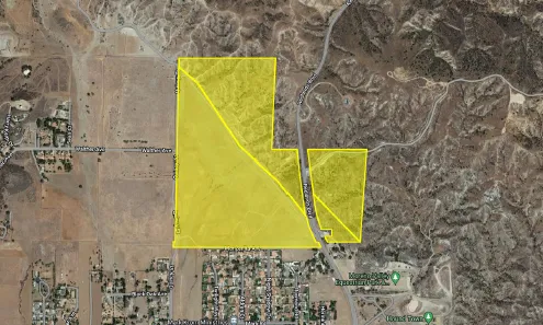 The subject property consist of 4 parcels that make up /- 119.91 acres of raw land located in Moreno Valley at the northeast corner of Quincy Street and Manzanita Avenue and extends east to Redlands Boulevard. Approximately 64.7 acres of the property is within the city boundary of Moreno Valley, while the remaining balance ( /-55.21 acres) is in unincorporated Riverside County. The 64.7-acre portion is made up of relatively flat land, while the 55.21-acre portion is primarily made up of rolling hills. The flat portion of the property does have an expired tentative map for 23 large lot estate style single-family homes. Per the Eastern Municipal Water District, there are existing water lines running through Manzanita Ave and along the eastern border of the 64.7-acre parcel. Additionally, there appears to be power lines along the eastern border as well.