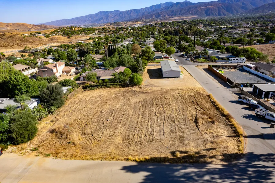 Driving Directions: From I-15, exit at El Cerrito Rd. Take El Cerrito northeast. Turn left on E Ontario Ave and go a few feet. Immediately, turn right on Emory Ave. Turn right on Hillside St. Turn left on Quebec Ave. Pass Poppy St. and go one block to the next intersection. The parcel is on the southeast corner of that intersection across from the house at 18955 Quebec Ave. Take the aerial map.
