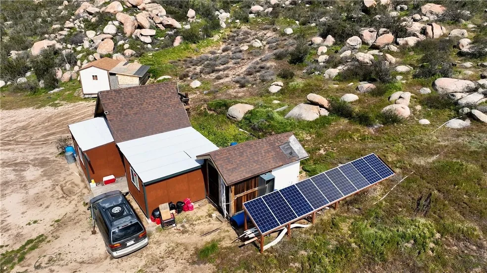 10.7 Acres of land in Reed Valley area of Aguanga. Gorgeous land on the hillside overlooking Reed Valley. Plenty of usable land! Embrace Off grid living with your very own cabin to go with the land. Several other sheds some partially converted to rooms/cabins. There is a fully functional well with solar pump. The property has some fencing. Come take a look! Bank financing available with as little as 15% down payment.