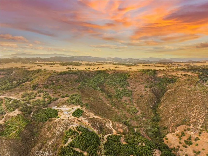 A private gated entrance welcomes you, leading down a road gracefully lined with mature oak trees that set the tone for a serene site. The land is enhanced by an established avocado grove of approximately 400 trees, planted in three sections (2005, 2015, and more than 20 years ago).