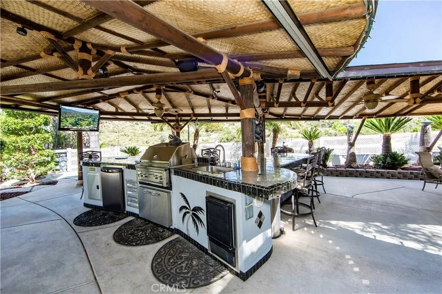 Entertain, Entertain Entertain, this property has a ginormous custom built Island with full cover and plenty of seating with two different areas for guests. You will love the finishing touches throughout the site. They thought of everything while they have been living on the property for years. The extra considerations with 2 parking areas for golf carts, Sego Palms all over and set on sprinklers for a low maintenance but beautiful lot. A few add-ons they added to the site: Built-in BBQ, Washer & Dryer, 2 mini refrigerators, stereo system, outdoor TV, water softener, even artificial turf. Included in Rancho California RV Resort is a 14 hole Executive Golf Course that is free for owners, 5 Pools and Jacuzzi areas, Tennis Courts, Pickle Ball Courts, Laundry Rooms, Dog Park, Horse Shoe Lawn, Club House, Hiking Trails, and Restaurant all inside Gated Community that is Guarded 24/7. You can live here or rent your space. Peace and quiet serenity all just 25 minutes from Temecula Wine Country. No age restrictions. Come on over and check this hidden gem of a place out... Financing Available...