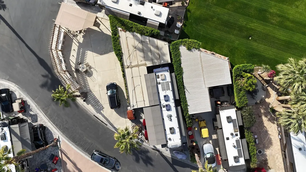 Entertain with friends or enjoy serene privacy in unmatched luxury at lot #187 at Outdoor Resort Indio. Built in 2022, this turnkey lot boasts one of the valley's only heated tiled floors, a pergola with an insulated Alumawood roof (keeping it up to 20 degrees cooler), and features like three reversible fans, roof lights, sconces, and ceiling heaters for those cool evenings. The outdoor kitchen is fully equipped with granite countertops, stainless steel appliances, a gas cooktop, oven, full fridge, built-in BBQ, and fire-feature tables for warm, inviting evenings. Two electric shades, manual shades, and custom protective covers ensure maximum comfort and style. Designed with both luxury and practicality in mind, this lot is near the pool, new 2022 plumbing, and ample outlets. It easily accommodates a 45-foot motorcoach, extra parking, and even a negotiable golf cart. Security is covered with three wired and solar infrared 360 degrees cameras and lights, while the outdoor entertainment center with internet and a projector TV makes it perfect for hosting. The lot orientation offers great sun protection and stunning sunsets, while plans are approved for a privacy wall with a walk-in closet. If you are a pool lover, this lot has access from the rear of the lot towards the pool area and golf course. This secluded and thoughtfully designed lot is your chance to own a truly unique piece of Outdoor Resort Indio. Outdoor Resort Indio is a class A only motorcoach resort in Indio, California.