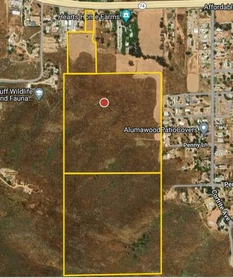 Impressive contiguous property consists of four adjacent parcels with great access from Highway 74, inclusive of Residential Vacant Land in the front and Open Space land in the back for potential development. Beautiful mountain views overlooking a growing community. This is the perfect property for the right investor(s).