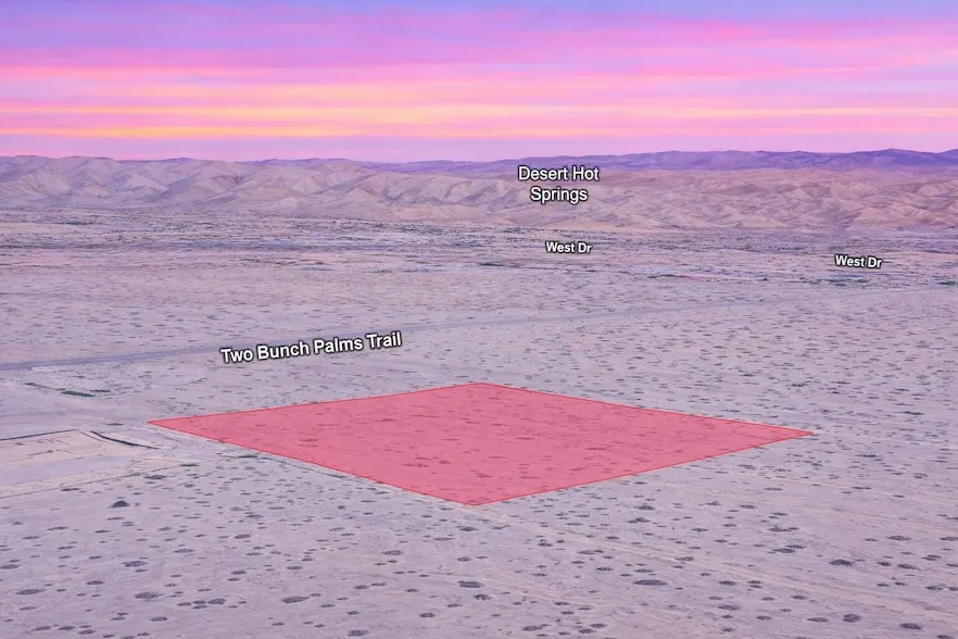 Research Parcel InformationFrom Palm Drive, head east on Two Bunch Palms Trail. Turn south onto Cabot Road. Property is located near the intersection of Two Bunch Palms Trail and Cabot Road, accessed via the unpaved extension of Atlantic Avenue. Look for signage.