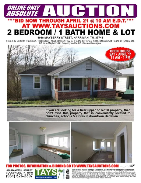 Terms: 10% Buyer's Premium. 20% down at end of auction. Balance due at closing