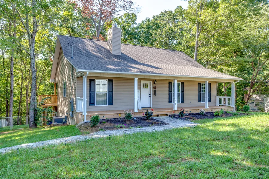 Cute as button like new ranch on 2 plus acres. Oversized covered entry invites you to this 3 bedroom 2 full bath home. All kitchen appliances remain in the open kitchen with abundance of cabinetry. Covered porch extending most of the back of the home overlooking fenced yard and fire pit. All you see is your wooded 2 plus acres. Quiet and peaceful.