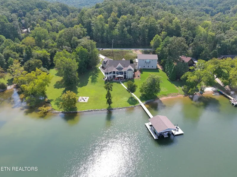 ''A lifestyle that most only dream about'' This custom-built masterpiece combines upscale design, panoramic main channel lake and mountain views, and prime deep-water access. Tucked away for privacy, you will enjoy breathtaking sunsets, quiet mornings & convenience to Marinas and more Waterways. Property offers over 300+ ft of level Shoreline and an easy walk to your Two-slip dock that includes 2 boat lifts, floating Jet Ski dock, and spacious Sitting Area, with dock furniture included. New Owners will be amazed by the Newly built Detached Garage with Guest House adding an additional -1500 sq ft, ideal for multi-generational living, guest or STR income, garage features 14ft garage doors that will accommodate up to 2 RV's with 1 )hookup and clean-out , will accommodate 4 cars & a 2 car attached garage. Main Residence Features a well thought out floor plan with quality inside & out: Solid wood doors, New Luxury Flooring Crown Molding, Granite Countertops, Beautiful stack stone FP, Master On Main, Formal Dining, Private Office, Great Room, 3 Kitchens, Family Room, Hobby spaces, an oversized workshop and an abundance of storage. Spa amenities: Hot Tub, Infrared Sauna and Work-Out space. Home includes All Appliances & 2) 80 '' TV'S, A Newer 50-year Architectural Roof, Sprinkler System, a Generac generator, a Sun-Setter Retractable Awning on the expansive deck and so much more! This home is designed for entertaining and relaxing in style, with a layout that offers Amazing Views from almost every room and multiple separate living quarters - perfect for large gatherings, hosting guests, or maximizing short-term rental opportunities. Live here full-time, invest in a high-demand STR, or retreat seasonally - the choice is yours. Rare doesn't even begin to describe this lakefront opportunity. CALL NOW FOR YOUR PRIVATE SHOWING AND PREPARE TO FALL IN LOVE!!!! **( All Furnishings negotiable)**
