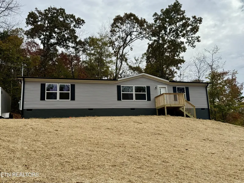 New Construction with country charm **, seasonal VIEWS OF LADDS SHOALS/Clinch River and nestled on a wooded, half-acre lot in Holiday Shores Resort (MINUTES FROM KINGSTON). This home qualifies for 100% USDA financing and seller is open to buyer closing cost concessions with reasonable offer. The property goes into the woods well beyond the cut bank and the house on the left. Very private. Numerous custom upgrades throughout added by builder make this home one-of-a-kind. Vaulted ceilings and a gorgeous accent wall in the dining room. Beautiful craftsman woodwork around windows, doors and floors. Kitchen offers eye-catching white tiled backsplash, Glacier Bay black granite country sink, black retractable Glacier Bay faucet, undercabinet motion-sensing lights, black cabinet knobs, pulls and hinges. Large primary bedroom ensuite offers large walk-in closet and spacious bathroom with new white ceramic sink bowl, black faucet, black cabinet hardware, custom framed mirror and decorative shelving unit. Hallway bathroom also boasts upgraded white ceramic sink bowl, black faucet, custom framed mirror, black cabinet hardware and built-in over-the-toilet wood shelving unit. There is a spacious deck at both the front and back doors. Extra wide driveway for ample parking. Whole house fan, programable thermostat, laundry room next to kitchen with new washer and dryer. This home also has an upgraded, high-efficiency, chamber septic system and 1-year Builder Warranty. Turn-key, move-in ready. Two boat ramps are within minutes and several others nearby. Approximately 7 minutes to Kingston, or Interstate 40; 25 minutes to Turkey Creek, Lenoir City, or Oak Ridge.