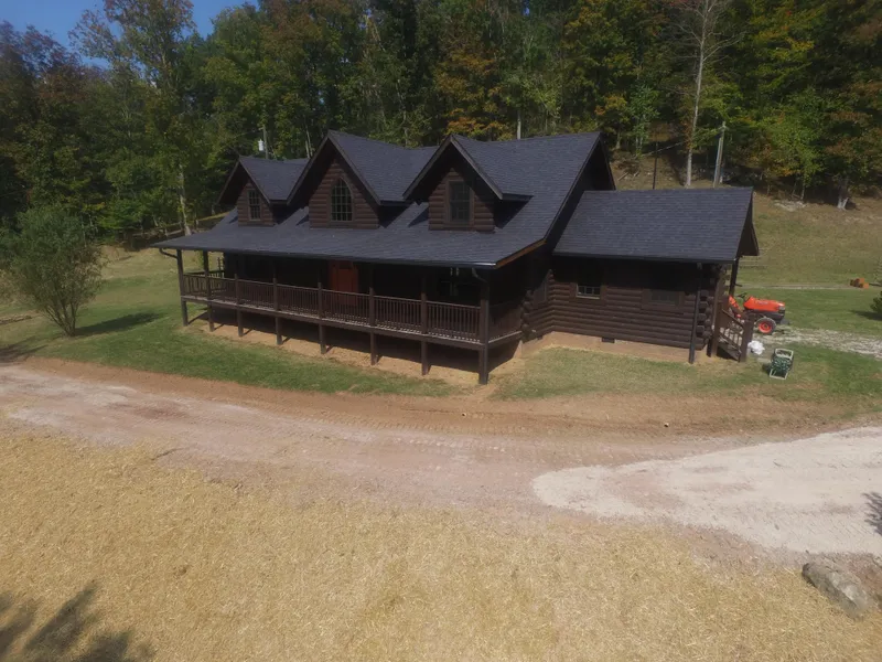 Best Log Home in the County. Where should I begin. Is it the great room with its towering stone fireplace that rises through the vaulted wood beamed ceilings. Maybe the custom kitchen with loads of countertop space. Lets consider the master bedroom that opens up to the grand covered porch that features its own fireplace and a master bath with its double fixture raining shower heads. There are 2 other bedrooms on the 2nd floor and a den that overlooks the great room. The barn shaped 4 car garage is much more than just a garage. From the outside it is reminiscent of an old style barn but It has its own full kitchen and the 2nd floor is large enough to double for a basketball court. There are several trails for ATV riding and the hunting is excellent. If you want a quality home, then this is it