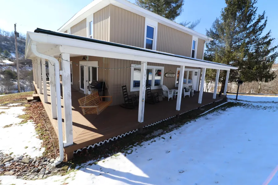 This is it!!! A beautiful home on the perfect homestead farm. The home features 4 bedrooms, large country kitchen with lots of countertop space and cabinetry. Extra large living room and dining room combination. You will absolutely love the covered porch on 3 sides of this maintenances free farmhouse. The farmer has been grooming the deer herd for years and they are awesome. There are hilltop meadows, old pasture fields, and a small bottom. There are 2 barns and a covered area with some utilities for an RV tucked away in a private valley. Watch the drone video and call me quickly.