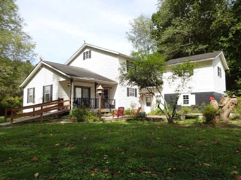Beautiful 104 Acres, Private "Almost Heaven" with 2-story country Home Sweet Home! 5 bedrooms (Master on 1st floor). 2 full baths on 2nd. floor and 1 and 1/2 baths on 1st floor. Spacious country kitchen 15x19, nice cabinetry w/island bar, formal dining room, living room, family room 16x21 with gas decorative fireplace, laundry/mud room. Central gas heat. Walk up floored attic for storage, etc. Separate detached bedroom, hobby/craft, man cave over cellar. Cellar for storing canned food, etc. and storage. Ramp to back entrance to house. 10x16 deck, 7x17 back porch 28x18 patio, 8x42 front porch for relaxing. Several storage buildings. Older mobile home for storage with available electric, water and septic, great for new mobile home or camper use, Property is easy assess, driveway off blacktop county maintained road. Small stream. Large yard with mature trees. Apple and Pear tree. Large gard...