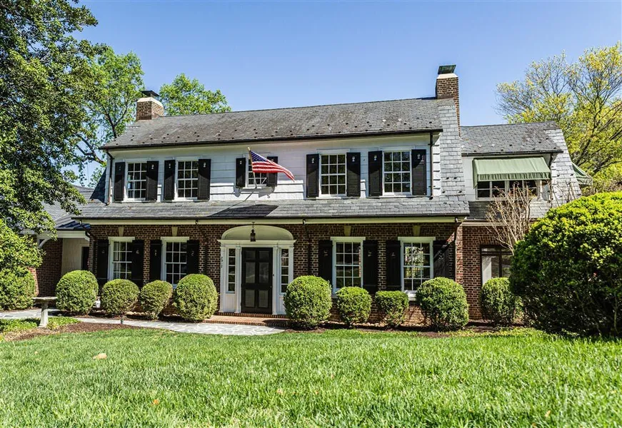 Remarkable Dutch Colonial home with accessible 1st floor primary suite. Custom designed and built in 1924 by noted Virginia architect Louis Smithey (Lane Stadium [VT], 1st Presbyterian Church [Roanoke], Lyric Theater [Blacksburg], and many custom homes in South Roanoke) for his personal residence. A perfect example of Colonial Revival design of the early 20th century. The home retains most of its original features, as well as tasteful and sympathetic additions including a large family room, main level primary suite, and garage on the main level. The main entryway features a perfectly proportioned aedicule, including a 42'' paneled door, elliptical fanned pediment, and sidelights. Expansive living and family rooms, each with masonry fireplaces and many built-ins.