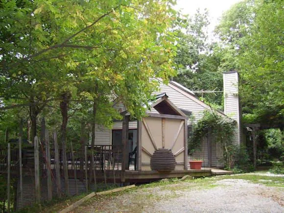 Living room and kitchen has vaulted ceilings and large windows so you can enjoy the great outdoors and sunlight from the inside. Two bedrooms and bath on main floor, built in cabinet with shelves, large walk-in closet in master bedroom. Basement has a finished 12x15,5 family room that has a large storage area, 21x10 hobby or exercise room in basement. The 2.19 wooded ac. has mature trees and still a garden area.