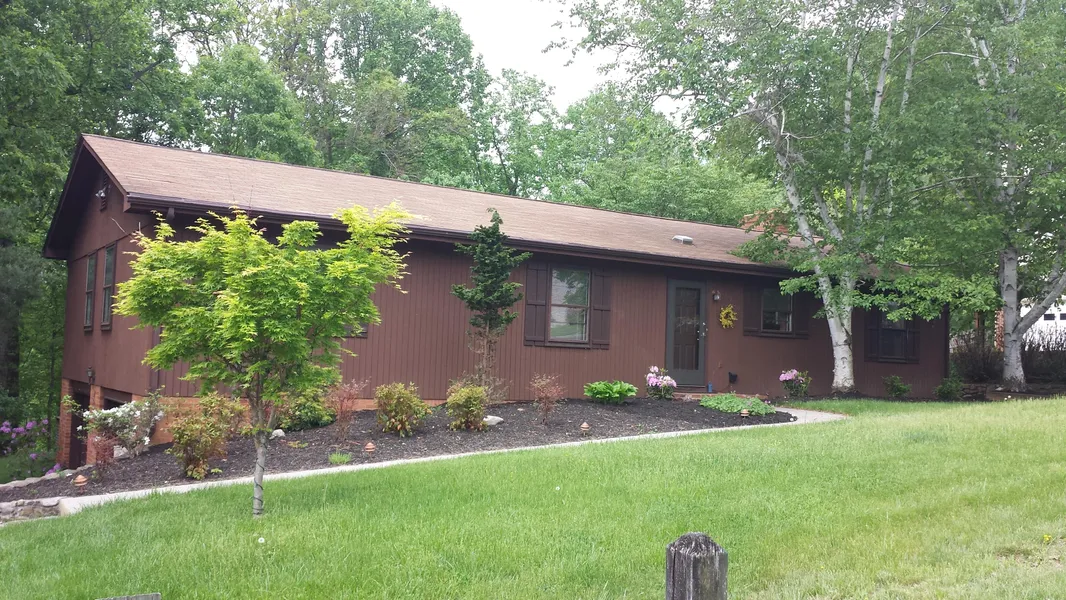 Spacious 4 bedroom, 2.5 bath ranch. 3 bedrooms, 2 full baths on entry level. Eat-in Kitchen, large open living room with skylight and fireplace. French doors to sunroom/den with access to deck overlooking private patio with pergola. Lower level includes family room with brick hearth and woodstove. 4th bedroom in lower level and would make a great guest room with private entrance. 2 car garage, New heat pump/furnace.