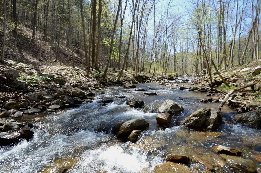 Mature hardwoods, ample game and wildlife, and great fishing. View of gorgeous waterfall.