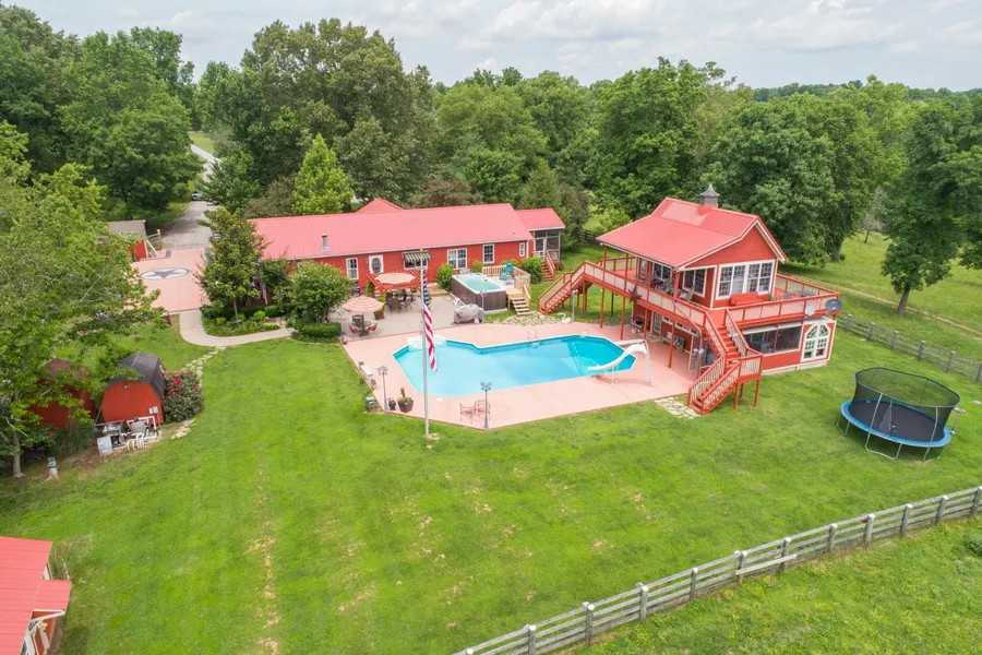 Remarkable income producing property. Over $5000 rental income. Two lakes, Barn, 110 acres plus small pond with cabin, Incredible pool, huge hot tub, separate guest house by the pool, several pastures for horses and cows. Fully Fenced.