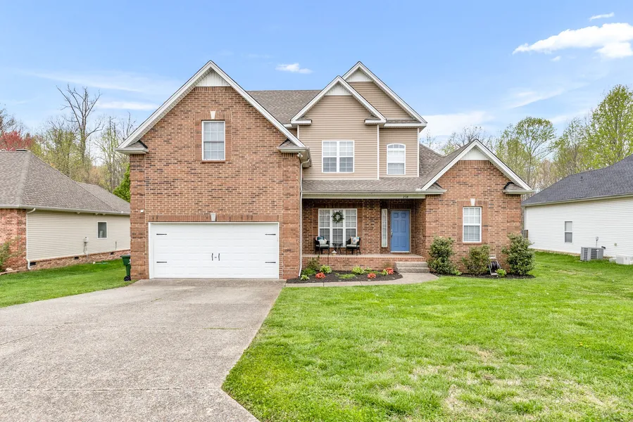 Open House April 13th 10am to 3pm. This handsome home has 4 Bedrooms and 2.5 Bathrooms with cathedral ceilings and expansive rooms. New LVP flooring in a complimentary & updated shade throughout. No carpet! This home is 2285 square feet with the primary bedroom on the main floor. Primary bathroom has separate double sinks, large soaking tub, separate shower, makeup vanity, and a huge closet with natural light! Upstairs 3 more bedrooms and a large bathroom with an extra sink AND storage! Extra closets with plenty of room are placed perfectly throughout the entire home. A fenced backyard that backs to the woods creates a secluded space to enjoy sunsets on the deck! Located within minutes to Heritage schools, shopping, and the interstate for a quick 30 minutes to Nashville.