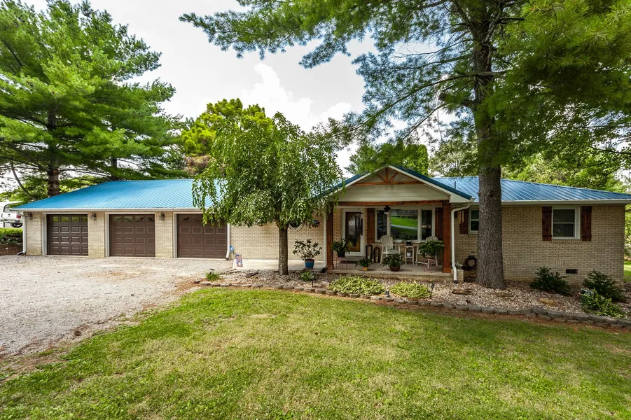 Charming Ranch Home on One Acre Lot in Tranquil Country Setting! Welcome to this inviting 3 bedroom, 2 bath ranch home nestled on a serene one-acre lot. Built with quality in mind, the all-brick exterior exudes durability and timeless appeal. The metal roof ensures lasting protection and low maintenance. Step into a cozy interior boasting a spacious layout perfect for comfortable living. The country setting offers a backdrop of trees and beautifully landscaped plants, creating a peaceful and private oasis. Enjoy outdoor gatherings or simply unwind on the covered back patio, ideal for relaxing evenings and al fresco dining. This property combines comfort with rural charm, making it a wonderful place to call home. Storage shed conveys with property. Owner just had new carpet and trim installed in primary bedroom. They also had the Kitchen and Living room painted. Plumbing in entire house was replaced about 2 years ago. Must see!