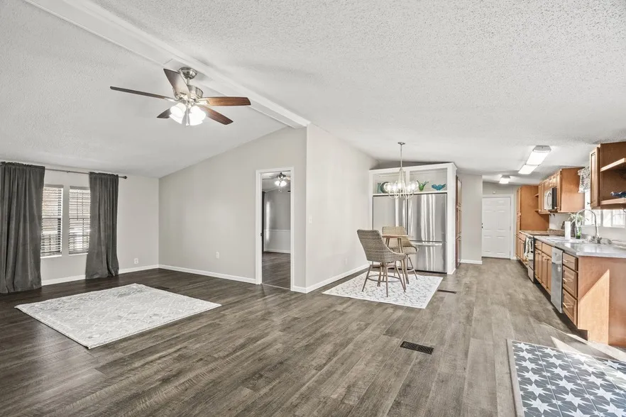 Modernized and ready for you to move in. This manufactured home has been updated to reflect the current trends - with an 18 wall of kitchen cabinets (plus some more), double stainless steel refrigerators, new microwave, ss dishwasher, large open living room with gas log fireplace, fresh paint, LVP flooring, you won t think your living in a doublewide. All the decks (front, side, and back) are made from composite decking and are nicely sized. These 5.46+/- acres are gorgeous! The trees are just beautiful! Not too many, not too few. The land is rolling and next to a church cemetery (you ll have quiet neighbors lol). There is a storage shed that stays and a fenced in dog yard. The schools are RobCo/White House Schools. Seller financing available.