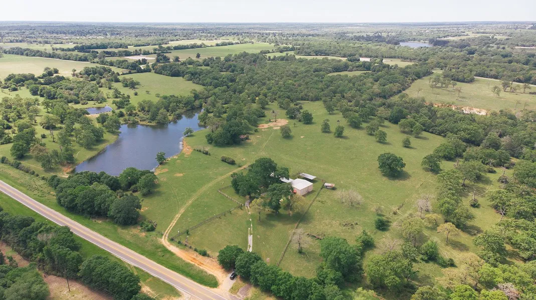 The Rocking L Ranch is comprised of +/- 75 acres located in eastern Robertson County on FM 1940, directly across from Camp Creek Lake in Franklin, and 30 minutes northeast of Bryan/College Station. 3,500 sf barndominium and 1,250 SF barn sit on the north side of the property, with a beautiful 5 AC lake and additional small pond near the middle of the property. The ranch is made up of rolling terrain with outstanding elevation changes throughout. Majority of the property is pasture with scattered oak trees and several areas of heavy woods. 2,200' of frontage on FM 19040 and nice, rectangular shape makes future division easily attainable. Metal barn was completed in 2014.