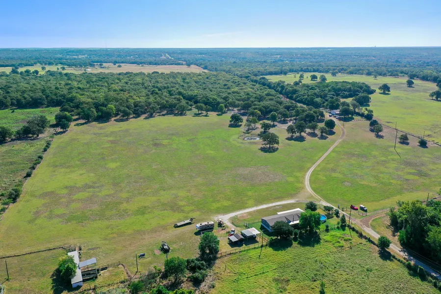 Stunning property just 22 miles from Texas A&M University! This +/- 42.68 acre property features a spacious 3br/2 bath, 2,088 sq ft double-wide home with over 1300 sq ft of porches. The land is 60% open/40% woods with good fences and a pond. The interior has beautiful floors, a large living area and open concept kitchen/dining/den. The master bath comes equipped with a built-in electric fireplace in one wall that provides much more than ambiance churning out heat on those cold winter days. A large above-ground pool off the side deck, which has a lifetime transferable warranty, will provide welcome entertainment for the whole family. Exterior walls are 6" thick with extra insulation to make the electric bill a breeze and you'll enjoy services like city water, city sewer and trash pickup. The round pipe horse pen conveys as well as a 10'x16' shed that also has power. There's also a horse ...