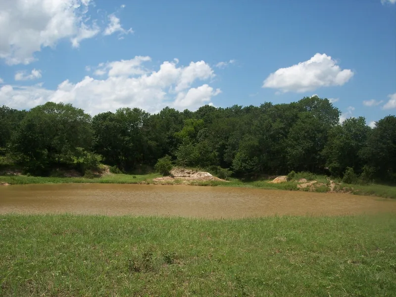 75% Bermuda pastures 25% wooded, Sandy Loam Soils, wet weather creek, Large Hardwood trees, pond, Barbwire fencing, Electric in area. Large rolling hills w/ scenic views, Franklin ISD.