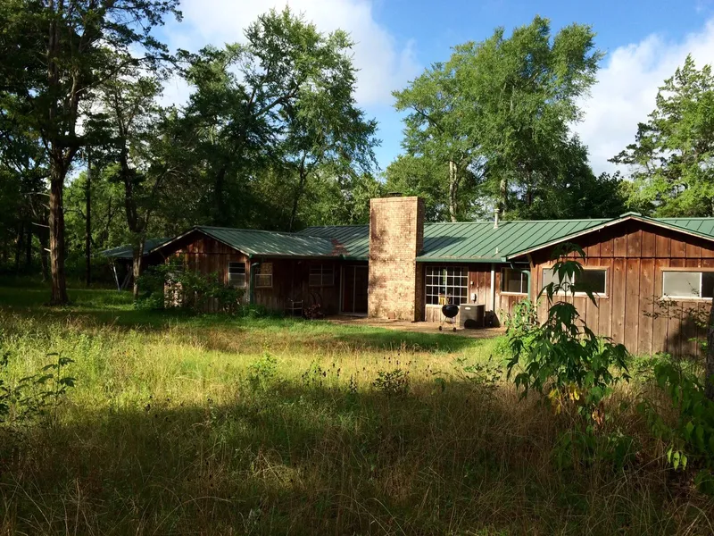Location, Location, Location!! Beautiful land on the edge of Franklin city limits. There are not many like this one. The 4 bedroom 2 bath main home is rustic cedar log exterior with comfortable features - huge front porch, large rooms, tiled floors, oversized family/game room, lots of windows overlooking the shaded front yard and the wooded back pasture. The detached 2 car garage features a 1 bedroom 1 bath mother-in-law apartment. Other outside property features include a small equipment shed and a detached shop/office building. Wildlife is everywhere and the pastures are full of thick coastal grass. A small pond at the front of the property marks the climb upward towards the home. Enjoy great views in all directions from the hilltop. This property is special and deserves a look!