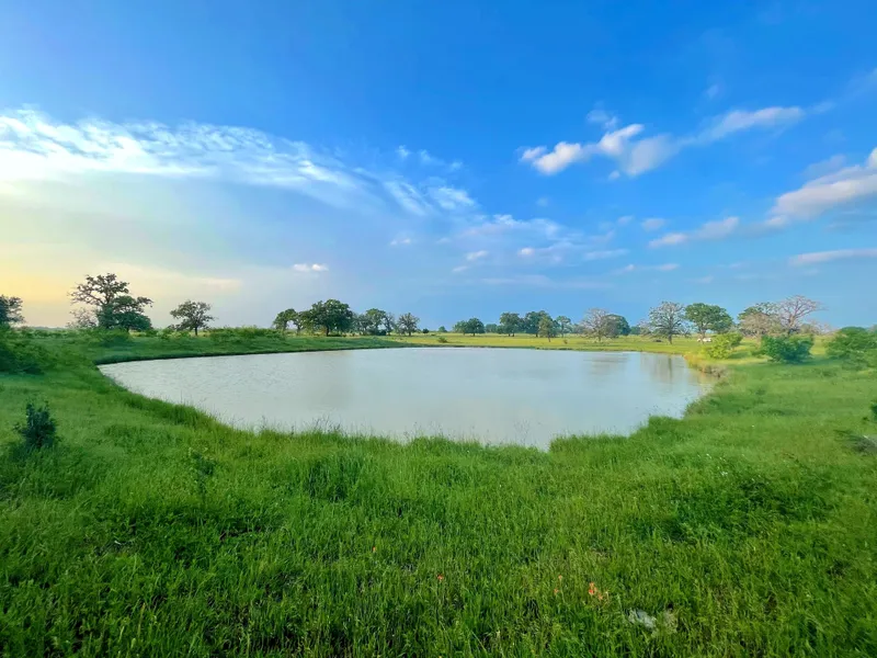 This beautiful, grassy property is dotted with mature post oak trees. Native and improved grasses, several species of wildflowers, and a wide stand of oak canopy create a vivid green pastoral setting and plenty of grazing for horses or cattle. Woven into the partially improved pasture is a thriving population of native grasses and forbs, providing habitat for small mammals, songbirds, and raptors, as well as food for deer and feral hogs.