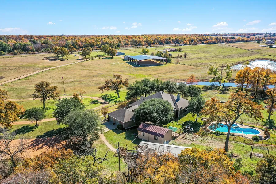 Bring your horses or your youth Ag projects to this beautiful country home in a beautiful country setting in Robertson County. With ease of commuting off Hwy 79 just north of Hearne, this property is in a great location, just 25 minutes to the Bryan/College Station area. Enter the property through a classic metal gated entry, winding up the gravel drive past large majestic Oaks, the barns and covered riding arena, to a circle drive in front of the main home. The custom brick home features 2,677 sf with two living areas (one with a fireplace) and two dining spaces, hardwood floors throughout, and a beautifully updated kitchen and master bath. In addition to the two guest bedrooms and another full bath and a half, the master bedroom, features a corner fireplace, on suite bath, large walk-in closet and private access onto the screened back porch, which leads out to the inground pool. Outside the home has been updated with a new roof, new HVAC and new gunite and tile for the pool. The home is nicely landscaped and the yard is well fenced. There is a breezeway from the large and spacious utility/mudroom area to the detached 2-car garage. A garden shed offers space for additional storage and gardening tools. The perfect guest space or optional rental unit, is a charming one bedroom, one bath country cottage, with a full kitchen and walk in closet, located near the main home. Headed back down the drive to the barn area, you will find a large equipment barn with lean-to area, a 3-stall horse barn with runs and tack space, a round pen, and a large 100 x 130 open-span, covered riding arena with two large fans. The property itself is 17.22 acres of improved and native grasses, fenced and some cross-fencing, with a pond and large Oaks, Elms and other trees. The home sits to the back of the property, well off the highway. With no immediate neighbors, your back yard is your own private oasis.