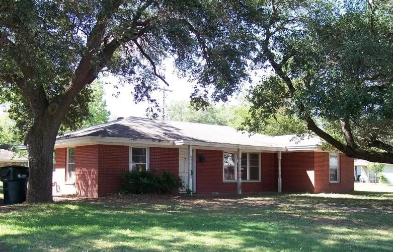 REDUCED 1378 S.F. 2 bedroom, 1 bath, home on Corner lot, across from Hearne Elementary School. Carport, Central HVAC, large trees, nice starter home. Hearne ISD