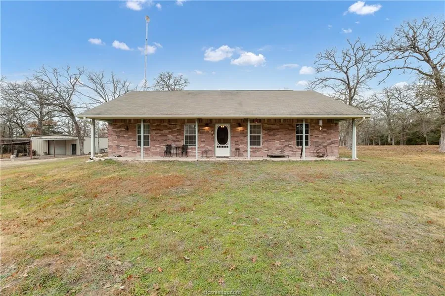 Cute 3-bedroom, 2-bathroom house sitting on 6 acres of rolling terrain with a pond. The property also boasts a 30x40 insulated metal shop with a 10x10 roll-up metal door. As you enter the house through the front door, you will be greeted by an open living room that leads to a dining area and a kitchen with a small breakfast bar. The split floor plan has two bedrooms on one side and the primary bedroom on the other, providing privacy and comfort. The primary bathroom features two sinks and a walk-in closet, and you can enjoy the beautiful view of the backyard from the covered back patio, which is accessible through the kitchen.