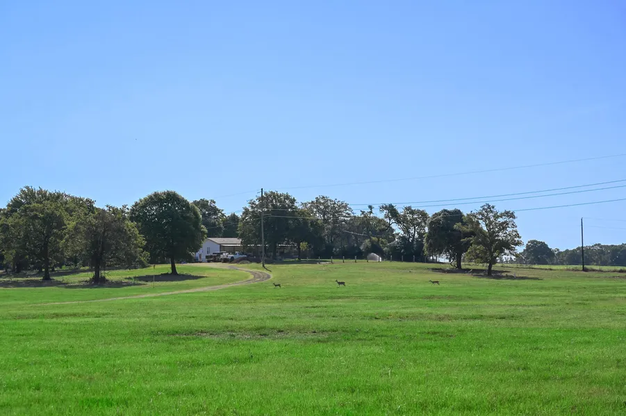 Delightful + or- 40-acre country ranch with a triple wide manufactured home sitting on a hill overlooking both wooded and open land. The best part is the freedom you experience with unrestricted acreage partially inside the city limits of Hearne and only 18 miles from Bryan/College Station. You can hunt in the woods on the back acreage and bale hay on the front acreage. Not unusual to see deer walking across the property! With city water and city sewer you have the best of both worlds. Set on a hill among mature live oaks, the 2296 sf residence offers a deep covered porch across the entire front of the house, 4 bedrooms, 3 baths, two living areas, open concept kitchen/dining/living and a study. With a fenced yard around the house, you don't have to worry about your livestock eating your landscaping. Water and sewer is already setup for another home or barn on the property in case you want to build a guest house. Buyer may choose to go to Hearne or Mumford schools. The Mumford bus picks up and drops off within a mile of this property. Pipe V-gated entrance at end of city-maintained road.