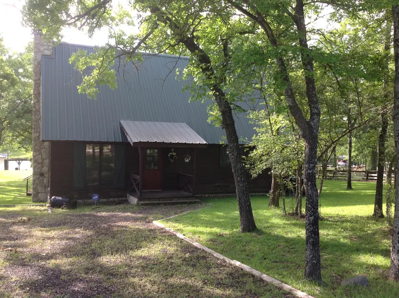 Lots of Bang for the Buck! 3 lots, 1 acre and 160 ft. of waterfront! Deep water cove! Appliances and most of the furniture will convey with the property. Country style cabin with nice open floor plan with a cozy wood burning fireplace, raised ceilings with beautiful accent wood beams, knotty pine cabinets and the feel of being in the woods. The 3 lots are sprinkled with big trees, a storage building, covered BBQ area, boat house with lift, boat ramp and 160 ft. of bulk headed water front and a sprinkler system. 1400 sq. ft. with a nice master bedroom downstairs and large loft area upstairs for the kids. Perfect lake home and ready to enjoy now! Lake Limestone is located centrally to Austin, Houston and Dallas.