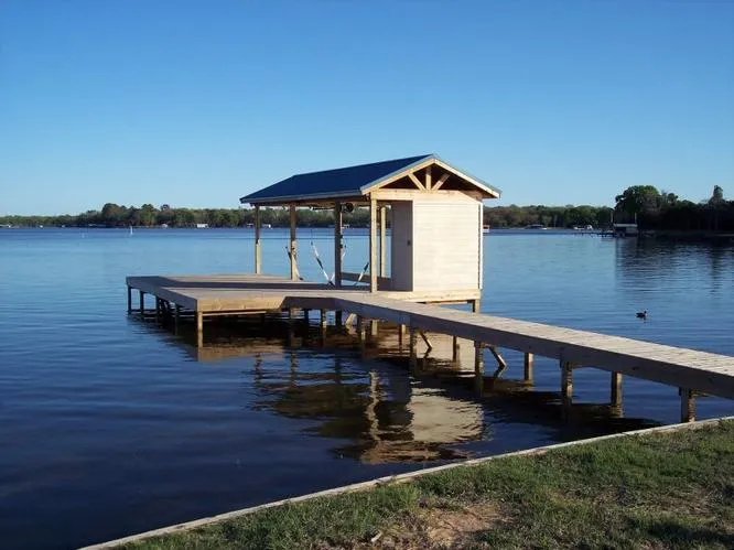 1,616 sq. ft., 3 bed, 2 bath home on slab, new electric panel, new Hardi plank siding, new HV&AC and new vinyl windows in 2010, septic system replaced in 2002, installed 30 yr. shingle roof in 2008, Limestone block retaining wall & concrete patio with fire pit, 2 car detached garage with workshop & storage area plumbed for bathroom, one slip boat dock with fishing pier, party deck, electric boatlift, and storage closet. It has lots of new wooden bulkhead along the Lake. Camp Creek Water Co. stock certificate will convey with property, Franklin ISD