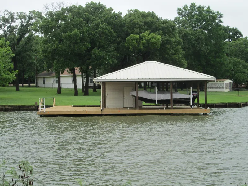 You must step inside to appreciate this 4-2.5 brick home with 2250 +/- square feet has been updated throughout including brand new engineered wood flooring in the living area; the kitchen features granite countertops, custom cabinets, and you will be cooking with gas with top of the line appliances. The wide wall of windows facing the lake leads out to a covered patio. The windows bathe the vaulted ceiling great room and stone fireplace in natural light . The oversized master suite with vaulted ceilings has a perfect view of the lake, and boasts of a walk-in shower, garden tub and walk in closets. Lakeside there is 281 ft of bulkheaded waterfront, fenced back yard, with sprinkler system. The boat house includes a sundeck , lifts and storage room. The property has a two car attached garage and a separate garage with storage.