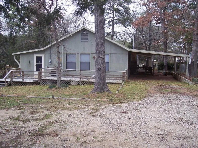 3 bed, 2 bath, cabin on pier & beam, 1,470 sq. ft., fully furnished, CA&H, gas stove & fireplace, utility room, metal roof, large screened porch and wooden deck overlooking lake, covered patio, attached carport, all steel detached insulated garage/shop Camp Creek Stock certificate conveys, Franklin ISD