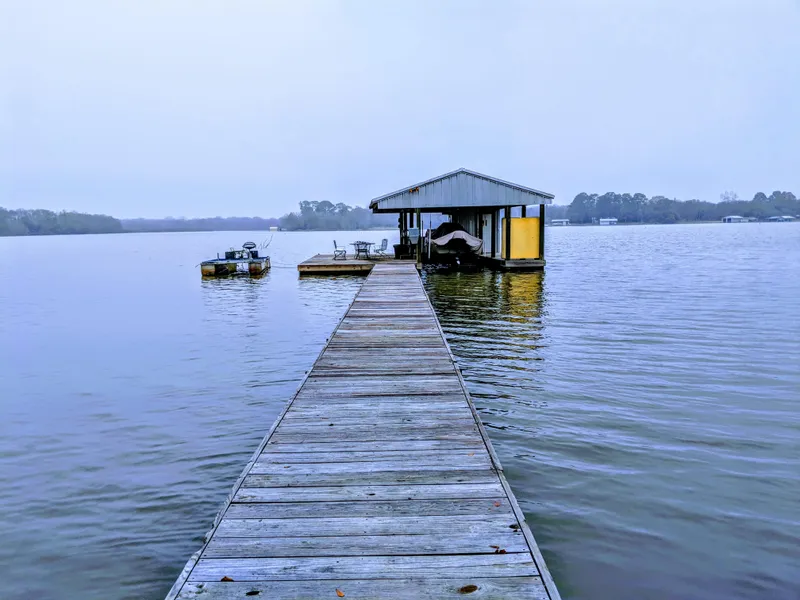 Beautiful waterfront lot on Camp Creek Lake with large yard and lots of shade trees. 3/2 M/H 1216 sq ft with 20x18 metal carport, 500 sq. ft of decking and 2 storage buildings (8x8 and 18x18). Waterfront amenities include a one stall boat slip w/lift, 16x32 partially covered party deck, 5 x 8 storage closet, outdoor sink, fish feeder and additional waterproof locker. Most interior appliances, furniture & furnishings are negotiable but are not included in the listing price. Other negotiable items include: Massey Ferguson 2300 diesel 4wd tractor w/front-end loader, box blade and shredder, John Deere Z425 zero turn mower, EZ Go golf cart, pontoon boat, 14 ft utility trailer and two patio sets. Shown by appointment. Franklin ISD.