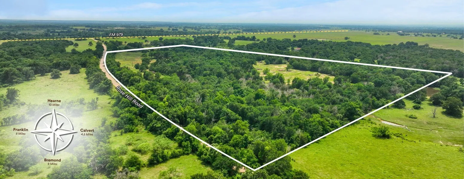 This 45-acre tract in central Robertson County offers a blend of open pastures and dense hardwoods with great topography changes. The property has direct access to electricity, and over 2,000 linear feet of paved road frontage on Rose Hill Road with a new pipe framed entry. The property features multiple build sites, and an excellent potential lake site, making this land great for a country homesite, or weekend getaway. Whitetail deer, wild hogs, and mourning dove are regulars on the property. The property offers the benefits of rural seclusion, along with quick access to nearby towns, and a short drive to Bryan- College Station and Waco.