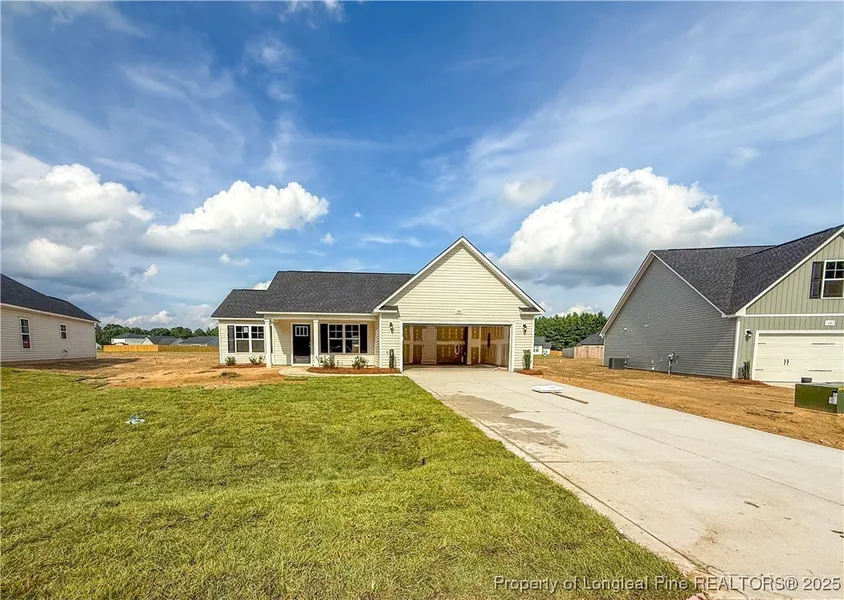 Welcome to the Parkton floor plan by Furr Construction, a delightful 3-bedroom, 2-bathroom ranch-style home located in a newly developed community on the edge of Robeson County. This home offers the perfect balance of convenience and tranquility, with easy access to Fayetteville, Fort Bragg, and the I-295 loop. Step into an open-concept living space that features a spacious living room with vaulted ceilings, a formal dining room, and a charming breakfast nook. The kitchen is designed for both function and style, with granite countertops, stainless steel appliances, ample cabinet storage, and a large center island. The primary suite is a peaceful retreat, featuring dual vanities, a standalone shower, and a spacious walk-in closet. The split bedroom layout provides added privacy, with two additional bedrooms that share a full bath on the opposite side of the home. Currently under construction, with an estimated completion date in mid-August 2025. HOME UNDER CONSTRUCTION