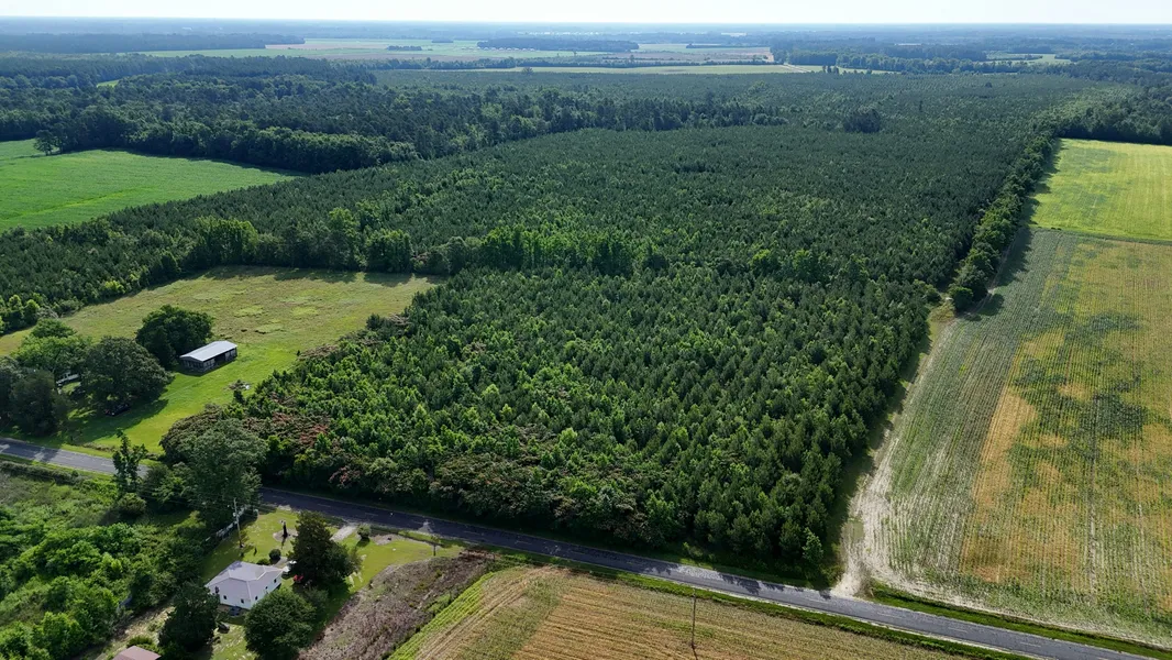 Featuring extensive road frontage, with 1,000 feet along Morrison Road and nearly 3,000 feet on Eva Road, this property boasts exceptional access and development potential. The mature loblolly pines enhance the land’s value, providing a sustainable resource for timber production and a picturesque landscape for various outdoor pursuits.