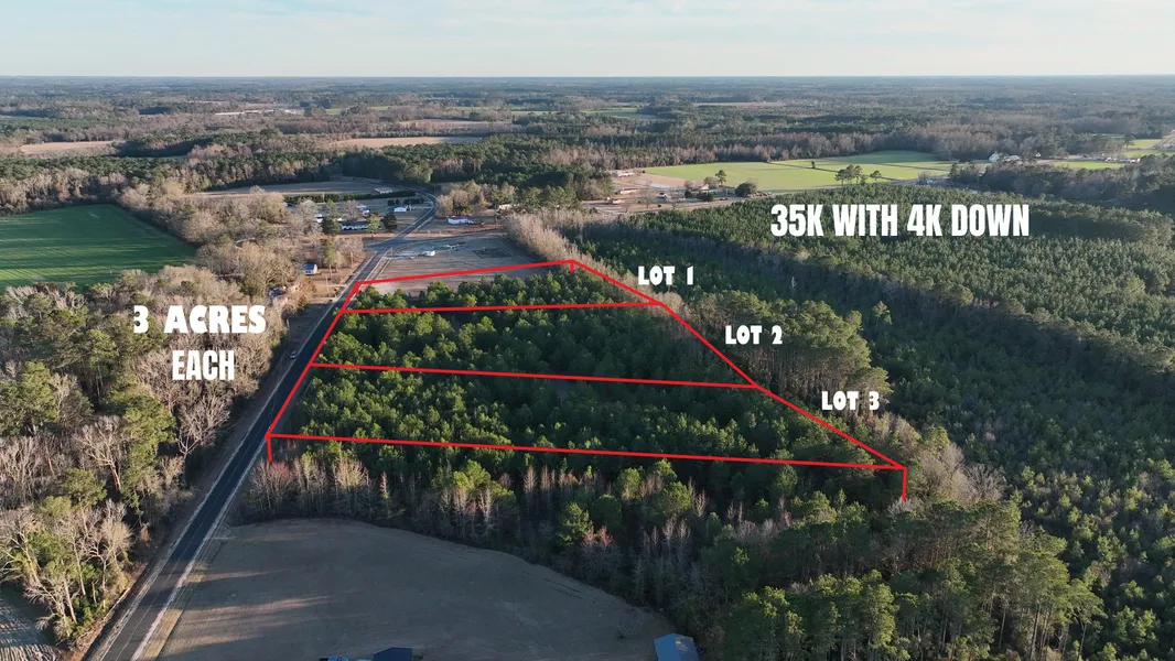 Secure your piece of rural paradise on Gerald Road in Fairmont, NC with flexible owner financing options. Purchase this beautiful 2.77-acre parcel for $35,000 with just $4,000 down. Choose between $697.44/month for 60 months (12.5% interest) or $490.69/month for 120 months (14.5% interest).